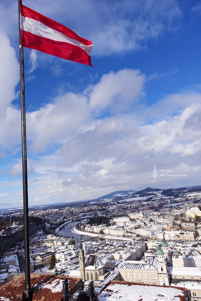 看著飄揚的奧地利國旗 幻想著中世紀時期這裡發生的事情